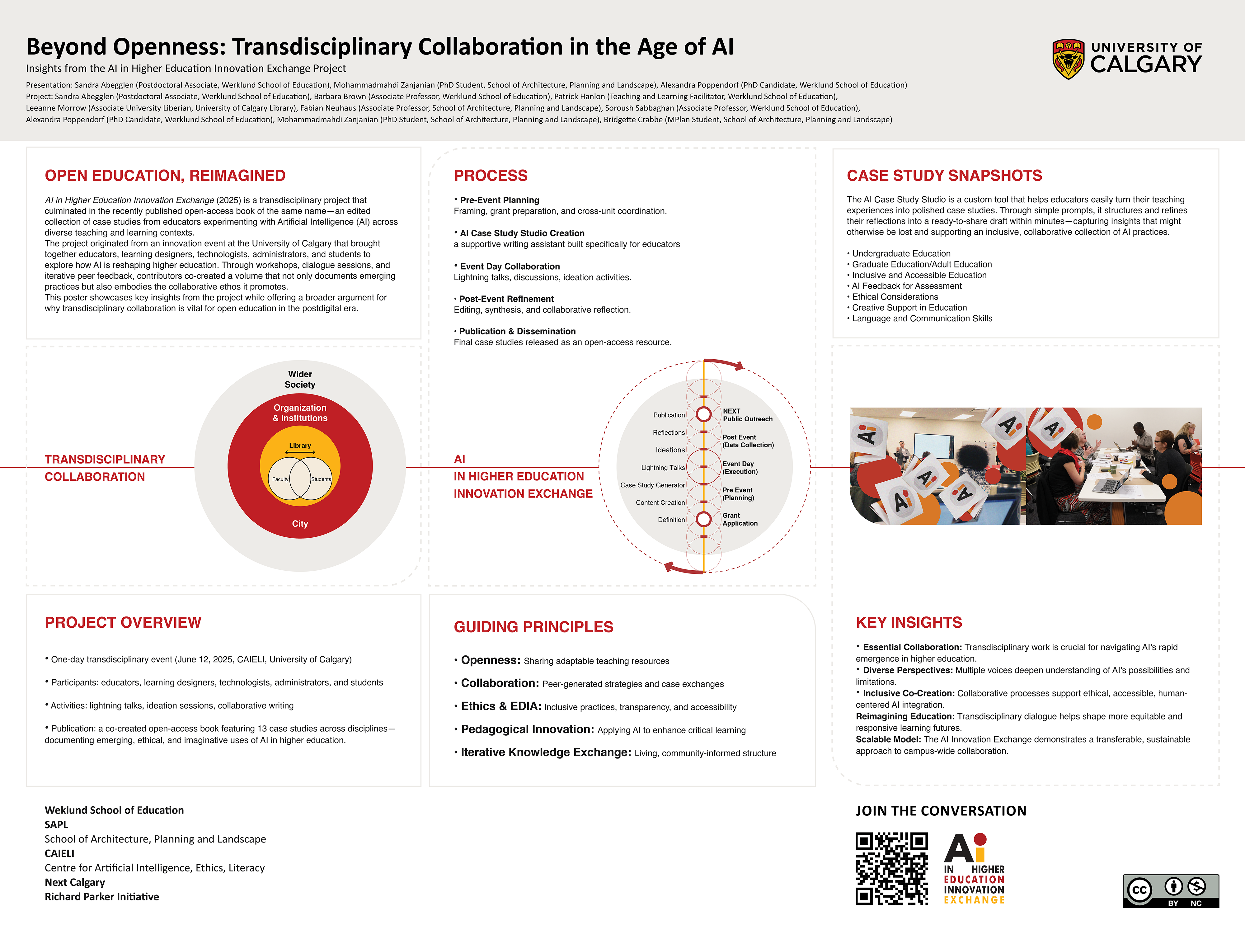The project originated from an innovation event at the University of Calgary that brought together educators, learning designers, technologists, administrators, and students to explore how AI is reshaping higher education. Through workshops, dialogue sessions, and iterative peer feedback, contributors co-created a volume that not only documents emerging practices but also embodies the collaborative ethos it promotes.